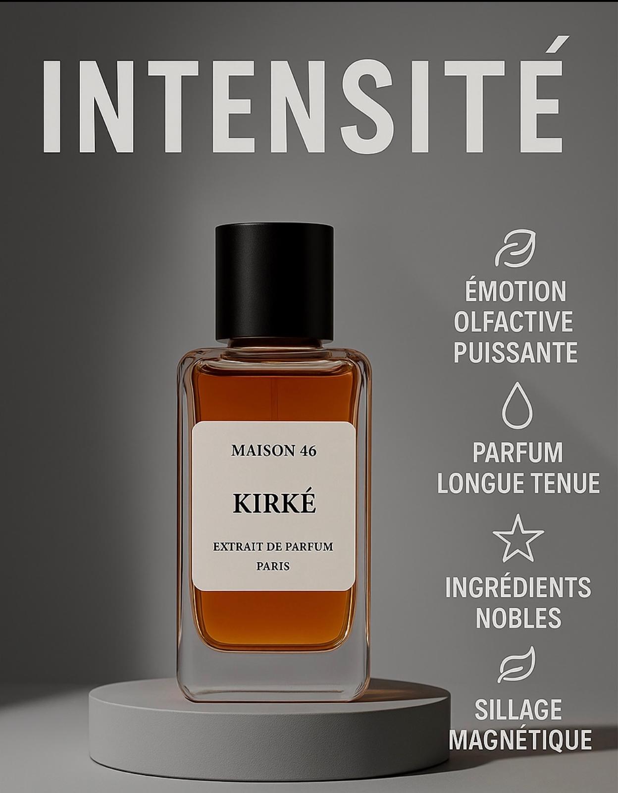 KIRKE est bien plus qu'une fragrance : c'est une romance incarnée, un voyage sensoriel où chaque note raconte une histoire. Cet Extrait de Parfum, connu pour son sillage puissant et sa tenue exceptionnelle, capture l'essence d'un amour passionné, à la fois fruité et profondément sensuel.